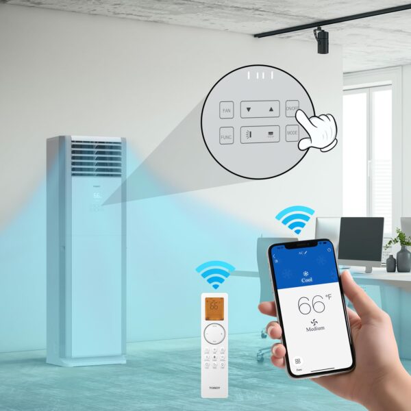 - Powerful Cooling & Heating: TOSOT Cosmo standing-floor split air conditioner delivers 34,000 BTU cooling and 34,000 BTU heating; 4 fan speeds, including Turbo mode, ensure rapid temperature adjustment; operates in conditions from -13°F to 122°F