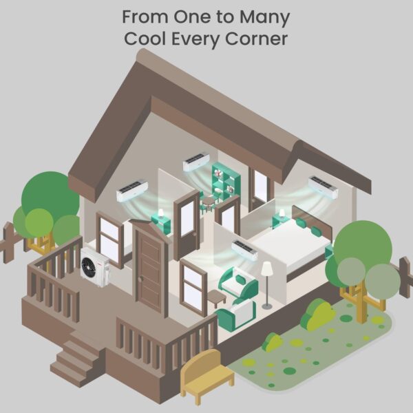 - Individual Temp. Control: Manage temperatures in two spaces using one 30,000 BTU outdoor unit with one 12,000 BTU indoor unit and one 24,000 BTU indoor unit. Customize temperatures from 61-86℉ and select different modes for each room to meet varying needs.
