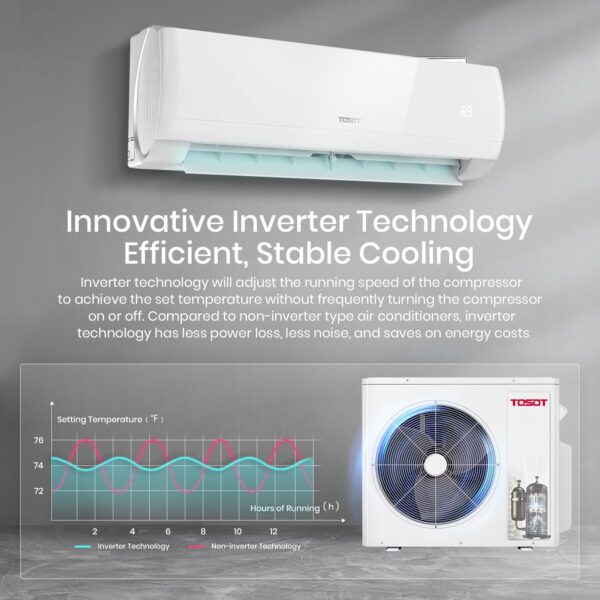 • Cost Saving: With a rating of 21 SEER2 and 10 HSPF2, the TOSOT MUSE series saves up to 24% on energy costs compared to conventional units rated at 16 SEER2. It is also Energy Star-certified and eligible for federal tax rebates, making it a smart choice for energy efficiency and financial savings.