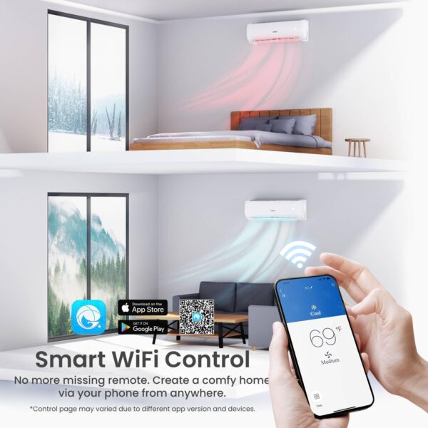 • Individual Temp. Control: Manage temperatures in four spaces using one 36,000 BTU outdoor unit and four 9,000 BTU indoor units. Customize temperatures from 61-86℉ and select different modes for each room to meet varying needs.