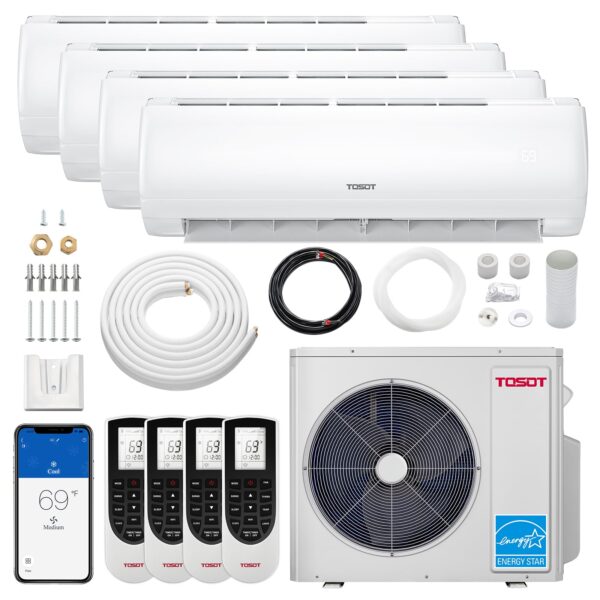 Be the first to review “TOSOT 36,000BTU Quad 4 Zone Mini Split Air Conditioner with Heat Pump, 21SEER2, 230V, Wifi-Enabled Ductless Inverter Split System with 16ft Copper Line Set, 9,000+9,000+9,000+9,000 BTU, Muse Series”