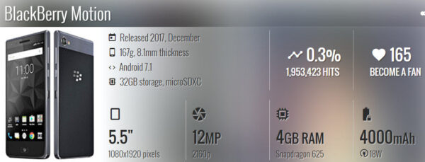 BlackBerry Motion 4GB+32GB WIFI LTE 4G 5.5“ Android Smartphone