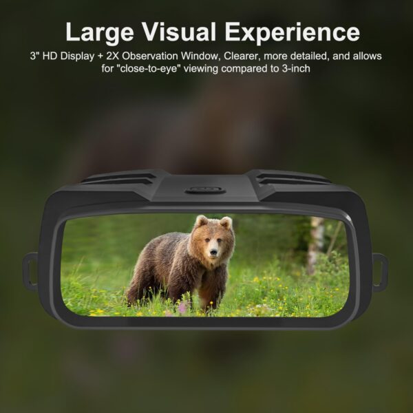• Full Color 4K Night Vision: VABSCE night vision binoculars feature a powerful focusable IR Illuminator and All-Optical Binoculars System and advanced SONY imaging technology allows you to see animals or plants clearly in 100% darkness or dim ambient light, enjoy vibrant colors even in low-light conditions. With 3 modes: taking photos, recording a video(does not record sound), and playback, you can capture and view high-definition photos & videos with outstanding optical clarity in the daytime, low light, or nighttime;