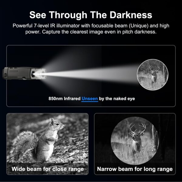 • Full-Color Low-light Imaging Technology & Powerful IR: The full-color night vision binoculars adopt the latest SONY imaging technology, which lets you observe and capture your surroundings in vibrant, vivid colors even in low light. The powerful IR Illuminator offers a focusable beam(Unique), high power, and 7-level IR adjustment. A Focusable Beam helps achieve the best illumination of an object in specific observation conditions. This boosts clarity and image quality, with 2x observation distance compared to others;