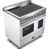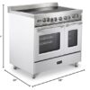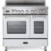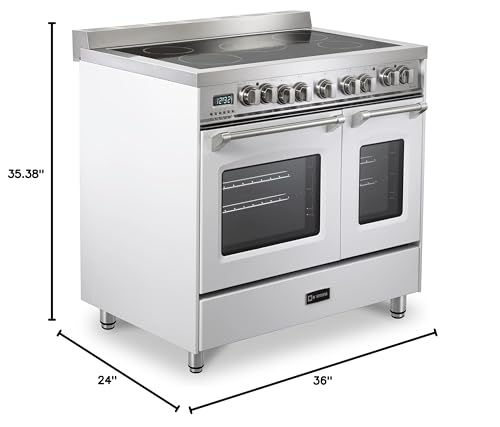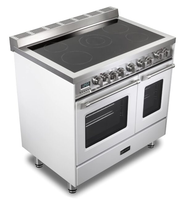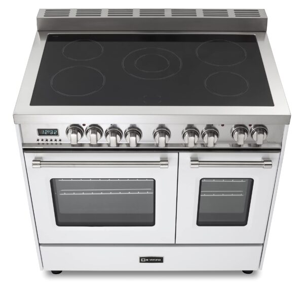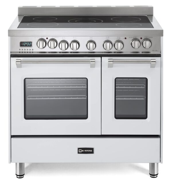 Verona Prestige Series VPFSEE365DW 36 Inch All Electric Freestanding Range Double Oven Convection, 5 Burners Dual Center Element Chrome Knobs and Handle True White