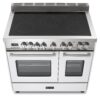 Details: MADE IN ITALY – The stylish Verona line of ranges, ovens and cooktops are a preferred brand of appliances featured in upscale kitchens throughout Europe since 1958. Each Verona piece is exquisitely designed and manufactured in the suburbs of Venice, Italy and stand as a benchmark for durable and beautiful Italian professional appliances. Verona products are held to stringent standards of quality unsurpassed in the industry. Verona Prestige Series Range in True White – Beveled Door, Round Stainless Steel Oven Handle, Chrome Knobs, Features: -5 Elements. – Convection oven. Broiler -Full width storage drawer. – Digital clock and timer. – Comes with gloss top. – Free-standing. Accessories Included: -2″ Back Guard. Double oven All Electric. – Cooktop Surface: -Smoothtop. 5 Sealed (electric) Elements , Dual Center Element, Left Front Element: 1700W – 7″ Right Front Element: 1200W – 6″ -Center Element: 2100/700W – Left Rear Element: 1200W – 6″ Right Rear Element: 1700W – 7″ Primary Material: -Steel. Dimensions: Overall Height – Top to Bottom: -37″. Overall Width – Side to Side: -35.88″. Overall Depth – Front to Back: -24″. – Main Oven Capacity 2.4 (Cu. Ft.) Oven Width: 18″ Oven Depth: 16″ Oven Height: 13 3/4 – Second Oven Capacity 1.5 (Cu. Ft.) Oven Width: 11″ Oven Depth: 16″ Oven Height” 13 3/4″ Overall Product Weight: -250 lbs. Hardwire- 120/240 Volts Amps:50A – Power Cord Not Included -2 Year Manufacturer Warranty – Residential Use Only –