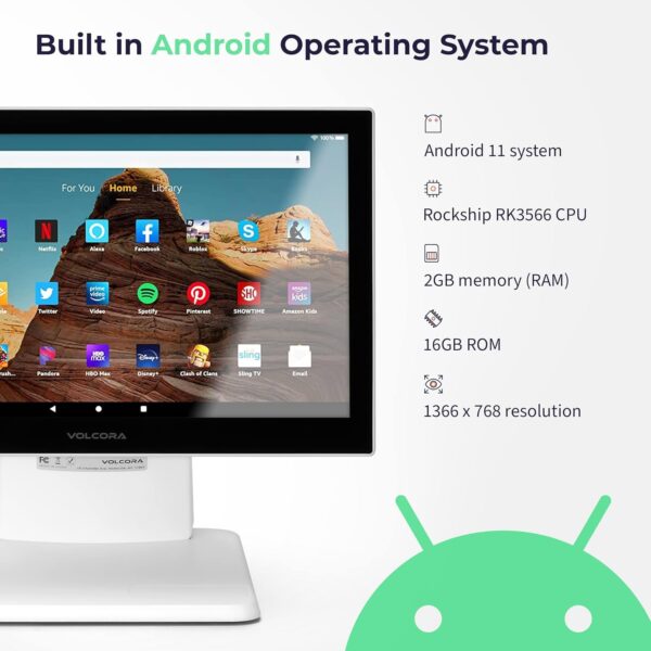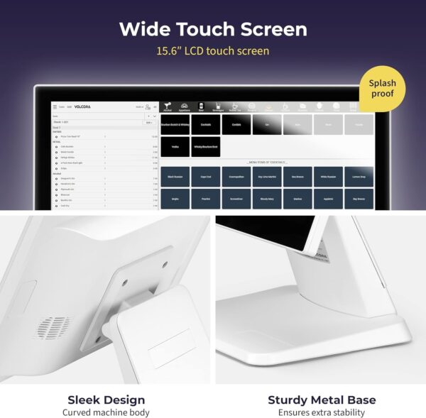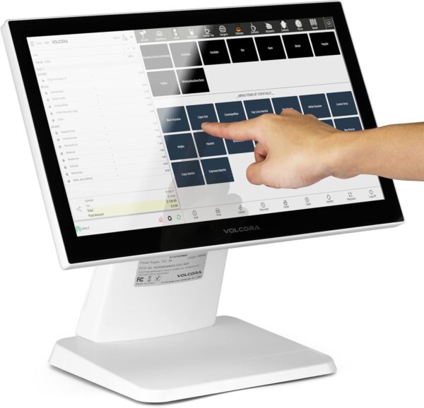 Volcora 15.6″ Touch Screen POS Terminal for Retail & Restaurants – Android 11, Cash Register System, Ideal for Small Businesses, White