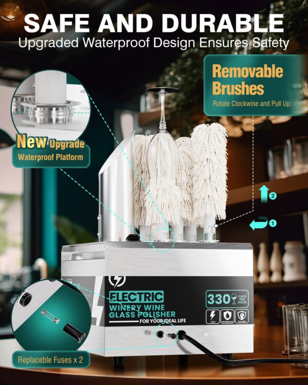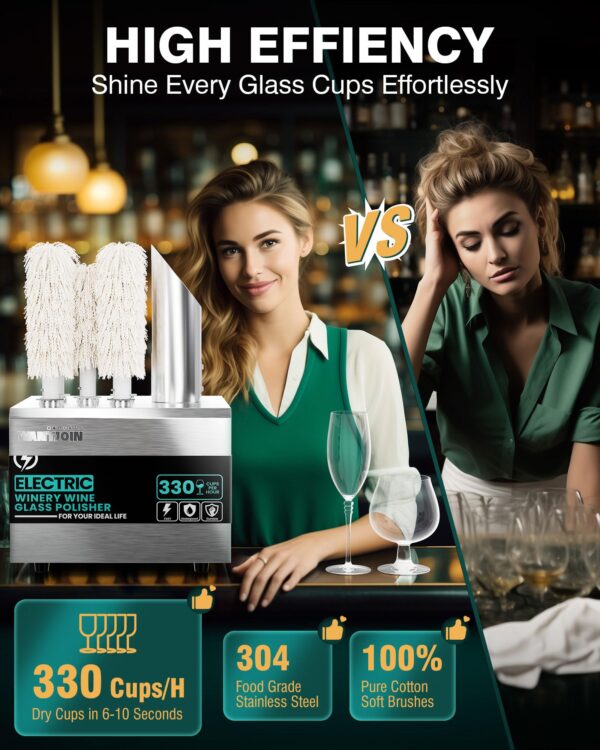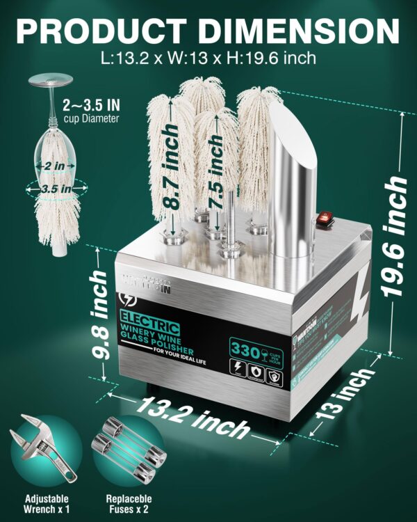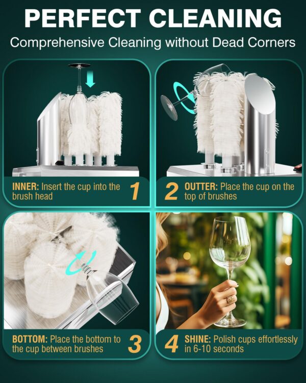 - 360° COMPREHENSIVE POLISHING: Made of food-grade 304 stainless steel, our wine glass polishing machine could polishe the innner/outter/bottom of glass cups. Wipe all corners of glassware and make your glasses sparkling.