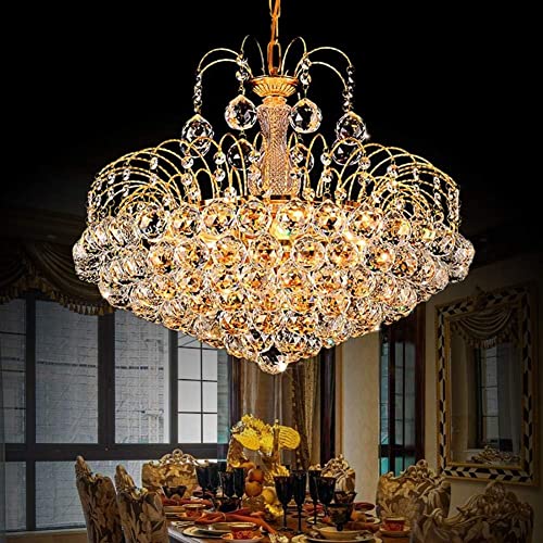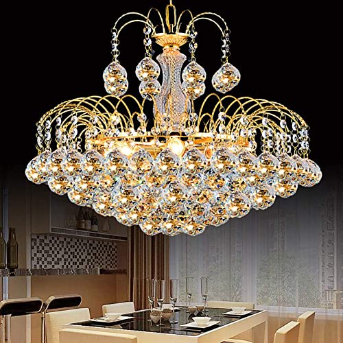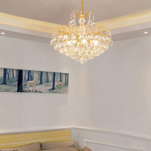 WCHCWR Luxurious Golden Crystal Chandelier – E14 Light Source Pendant Light with Adjustable Height, Beaded Design for Living Room, Dining Room, Bedroom, Kitchen, Hallway, 55cm(80x50cm)