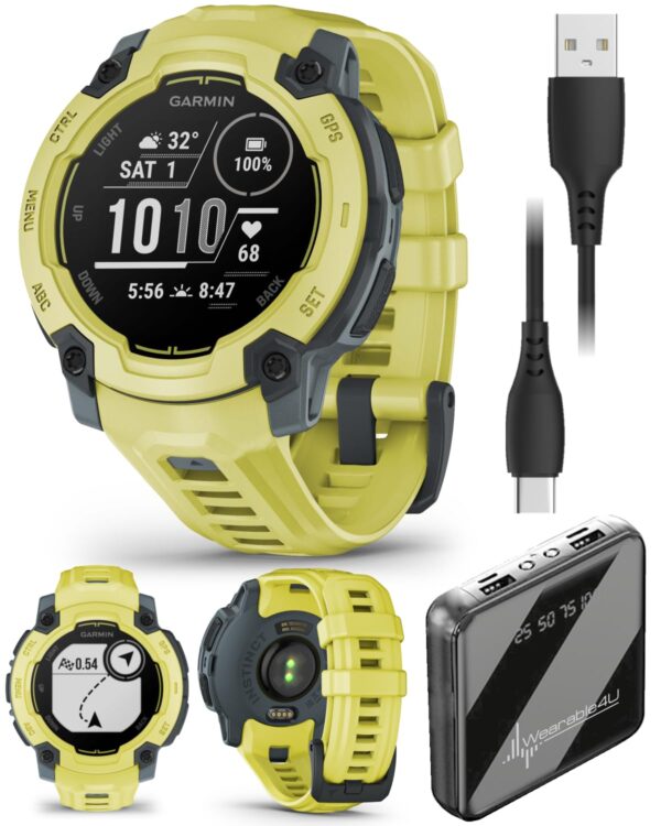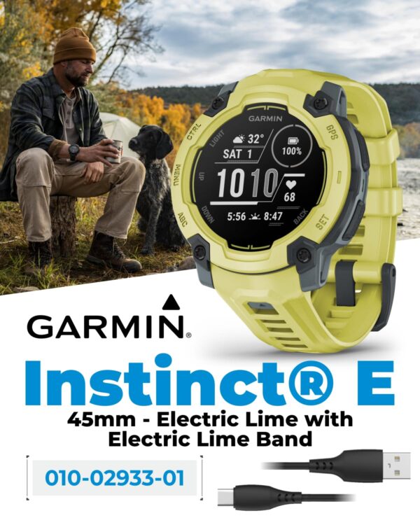 Wearable4U Garmin Instinct E 45mm, Rugged Outdoor GPS Smartwatch, 24/7 Health Monitoring, Wrist-Based Heart Rate, Up to 16 Days of Battery Life, Electric Lime Bezel with Electric Lime Band Bundle