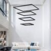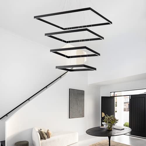 WELAKI 4 Black Square Chandelier Lighting, LED Pendant Ceiling Light Fixture, Contemporary Chandelier for Villa Living Room Entryway Foyer Staircase Office