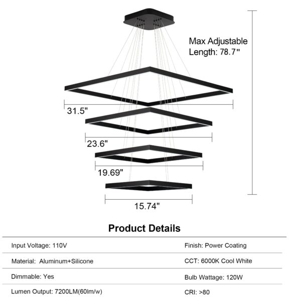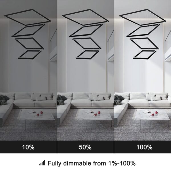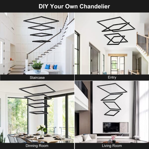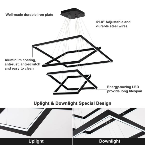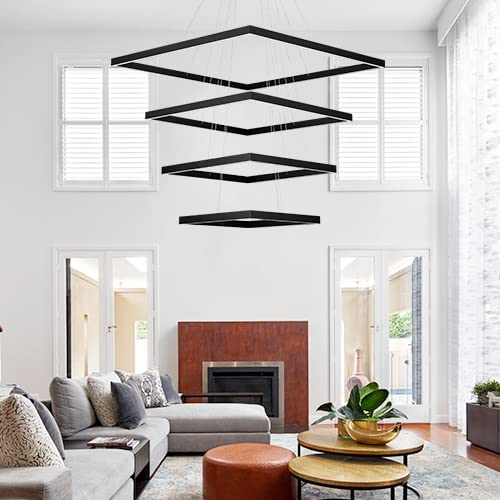 - 【Special UPLIGHT & DOWNLIGHT Design】With Special uplight and downlight, WELAKI Square Led Chandelier will perfectly light up your home and create an elegant atmosphere for your house. Designed in modern shape with 4 square rings, this led chandelier is perfectly for home decoration, such as entry, hallway, staircase, living room, corridor, dining room, kitchen island, meeting room, hall villas, restaurant, foyer etc.