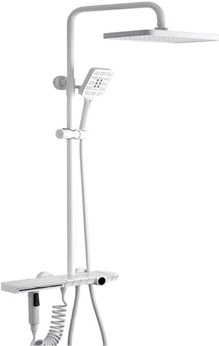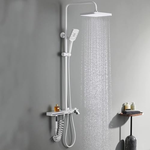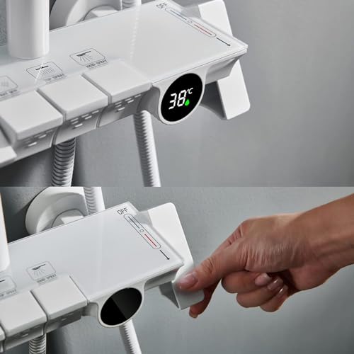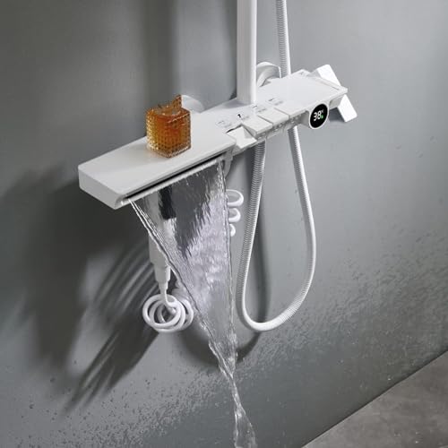 White Shower Faucet Set, Hydroelectric Power, Digital Temperature Display Shower, Rain Shower Head with Handheld Spray, Shower Faucets Sets Complete, Waterfall Tub Shower Faucet Set,Sprinkl