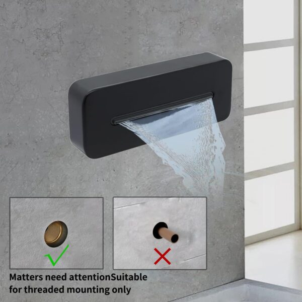 - Adjustable Up/Down Shower Spout: The square bathtub spout is also multi-purpose.It can not only be installed high up as a waterfall shower head, but also installed as a sink faucet or bathtub faucet. And we have upgraded the spout ,you can adjust the direction of its up/down spout.