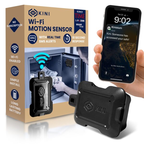 - REAL-TIME GUN SAFE MONITORING SYSTEM: Kini Wi-Fi Smart Home Security System offers wireless motion detection with real-time SMS alerts, ideal for securing gun safes and pistol vaults. The easy Wi-Fi setup requires no permanent installation, making it perfect for homes or apartments. Its smart detection system instantly alerts you of any movement or tampering, enhancing firearm security and the safety of your loved ones. This movement detector keeps your gun safes monitored at all times.