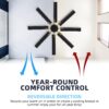 - CONTROL YOUR AIRFLOW: Equipped with a variable speed controller, this fan is easily reversible between Clockwise (Summer Mode) and Counterclockwise (Winter Mode), and has convenient wall holder for remote storage. 6 adjustable speed settings, allowing you to adjust the airflow according to your needs. It also has remote controlled operation – functional for multiple fans at one time.