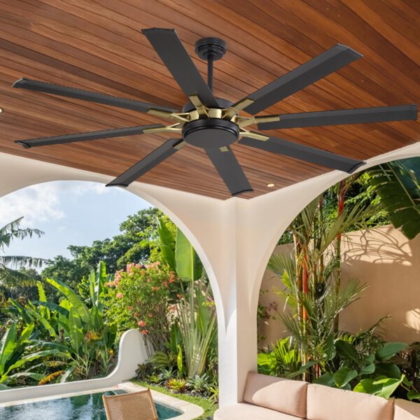 WINGBO 96″ Large Industrial Ceiling Fans No Lights, 8 Aluminum Blades, 6-Speed Powerful Brushless DC Motor Reversible, High Volume 10000 CFM at 84 RPM, Commercial and Residential, Brass and Black
