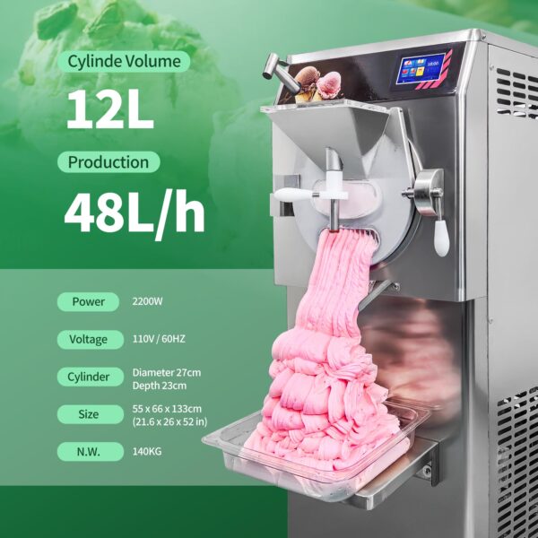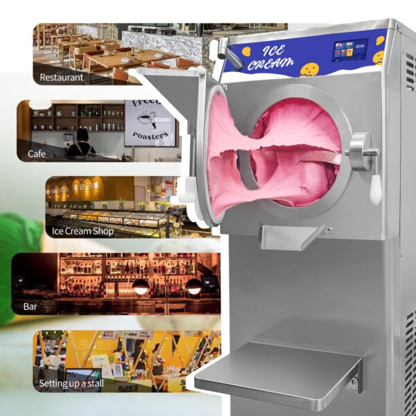 - 5″ Touch Screen – With time setting equipped, this Gelato ice cream machine can adjust softness and hardness of the ice cream. Ice cream discharge fast and in good shape.