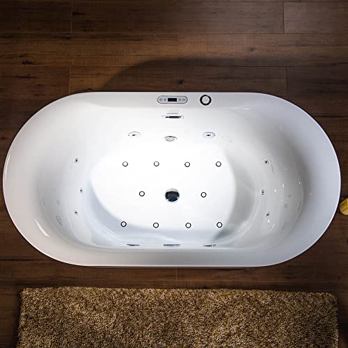 WOODBRIDGE 59″ x 31-1/2″ Whirlpool Water Jetted and Air Bubble Freestanding Heated Soaking Combination Bathtub with LED control panel,BJ-100