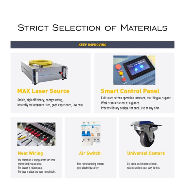 - TIME AND COST SAVING: High quality handheld laser cleaning machine can provide 360°non-contact cleaning and the integrated cable length of this handheld laser cleaning machine is 10-20 meters so you do not need to worry about distance limitation when using this machine. Anti-flame material of the outside cable to protect your safety. This laser rust removal machine is environmentally friendly to be used without damaging the base material.