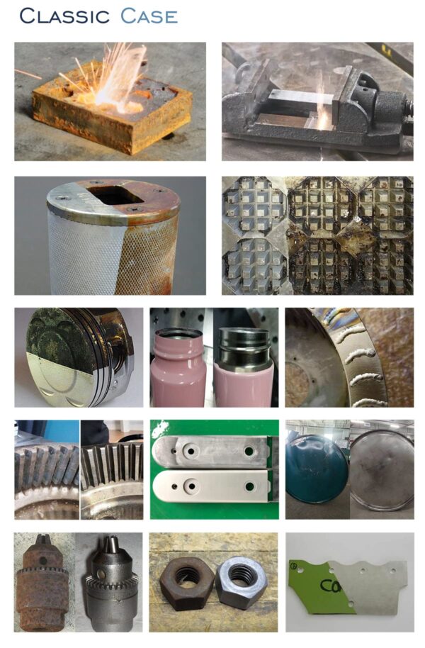 - WIDE APPLICATIONS: This laser cleaner is widely used in aviation and marine, electromechanical, rubber mold, equipment manufacturing, auto parts, and food processing. Common Applications: classic car rust paint repair, steel construction rust removal, graffiti removal, metal parts cleaning, paint stripping and removal, rust and corrosion removal, etc.
