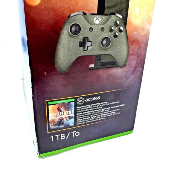 Clean, tested Xbox One S “Battlefield 1” Special Edition (Military Green, 1TB) bundle. Great value starter bundle or backup console—just plug in and play! -Console Original Stand. The item is in good condition and has been tested.
