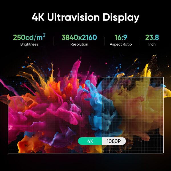 - Future-Proofing Drawing Monitor: A 4K display reduces the “screen door effect” in VR game design, eliminating visible pixel gaps for a clearer, immersive experience. Higher pixel density allows for precise design. Choosing this 23.8-inch 4K UHD (3840×2160) graphic tablet prepares your setup for future advancements in high-resolution content, VR, and game development.It also enhances multitasking by functioning as multiple 2.5K windows, eliminating the hassle of constant zooming and window-switching