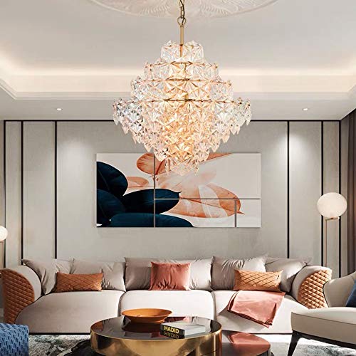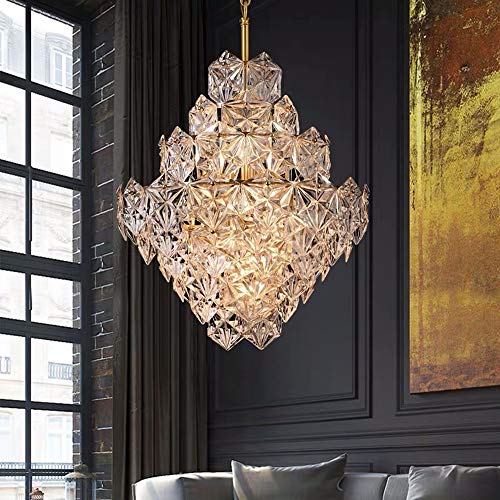 XYGUOXINGYY Chandelier-All Copper Crystal Villa Penthouse Floor Living Room Modern Minimalist Restaurant Light Chandelier Luxury All-Copper Lamps Long Life
