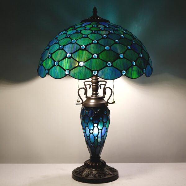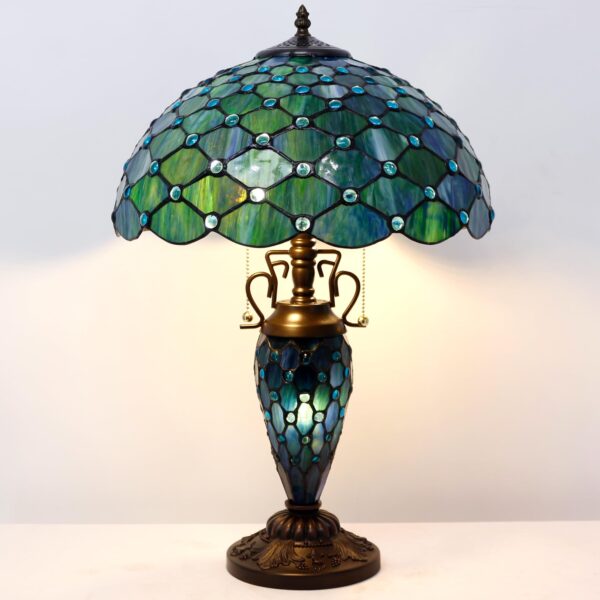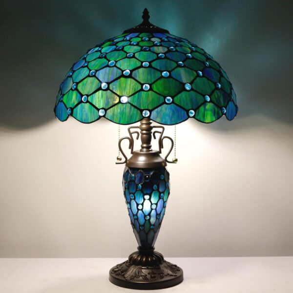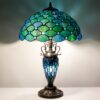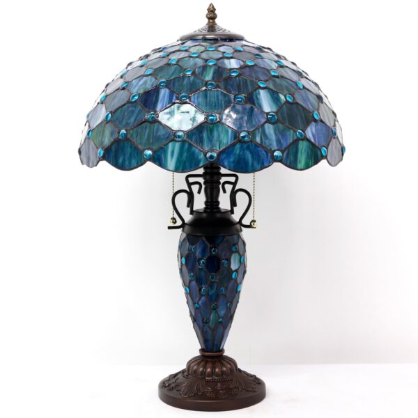ZJART Tiffany Table Lamp Stained Glass Lamp 16X16X24 Inch Mother Daughter Antique Reading Lamp with Night Light (Sea Blue Pearl)