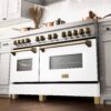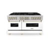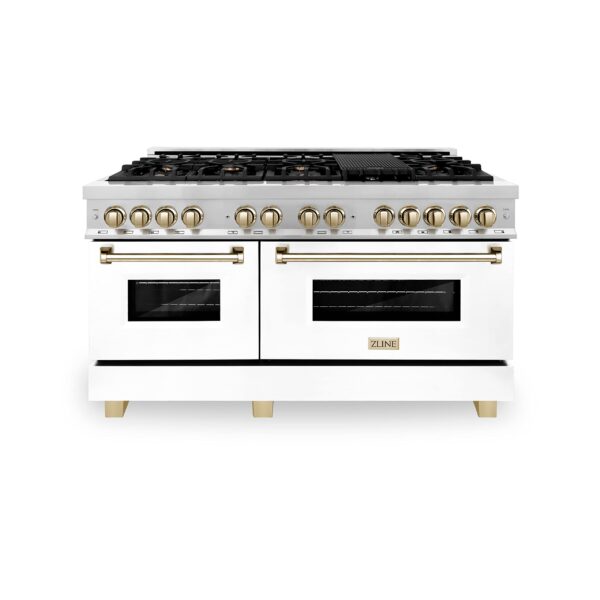 ZLINE Autograph 60″ Legacy Dual Fuel Range w/ 9 Burners & White & Gold Accents (RAZ-WM-60-G)