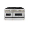 ZLINE Autograph Edition 60 in. 7.4 cu. ft. Legacy Dual Fuel Range with 9 Burner Gas Cooktop and 2 Electric Convection Ovens in Satin Stainless Steel and Polished Gold Accents (RASZ-SN-60-G)