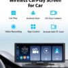ZUCWO 10.26 Inch Wireless CarPlay Screen for Car, Apple CarPlay & Android Auto Touch Screen Car Stereo with 4K Dash Cam, Bluetooth, Mirror Link, GPS Navigation, FM, Voice Control for Vehicles (Black)