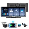 - 【GPS Navigation & Mirror Link】The 10-inch portable Apple CarPlay screen features accurate real-time GPS navigation using Google Maps or Waze, ensuring a smooth and stress-free trip. The wireless CarPlay screen supports wireless mirroring for both Android and iOS devices. Use Mirror Link to display your smartphone screen on the 10IN wireless CarPlay, giving you access to apps, media, and more while driving.